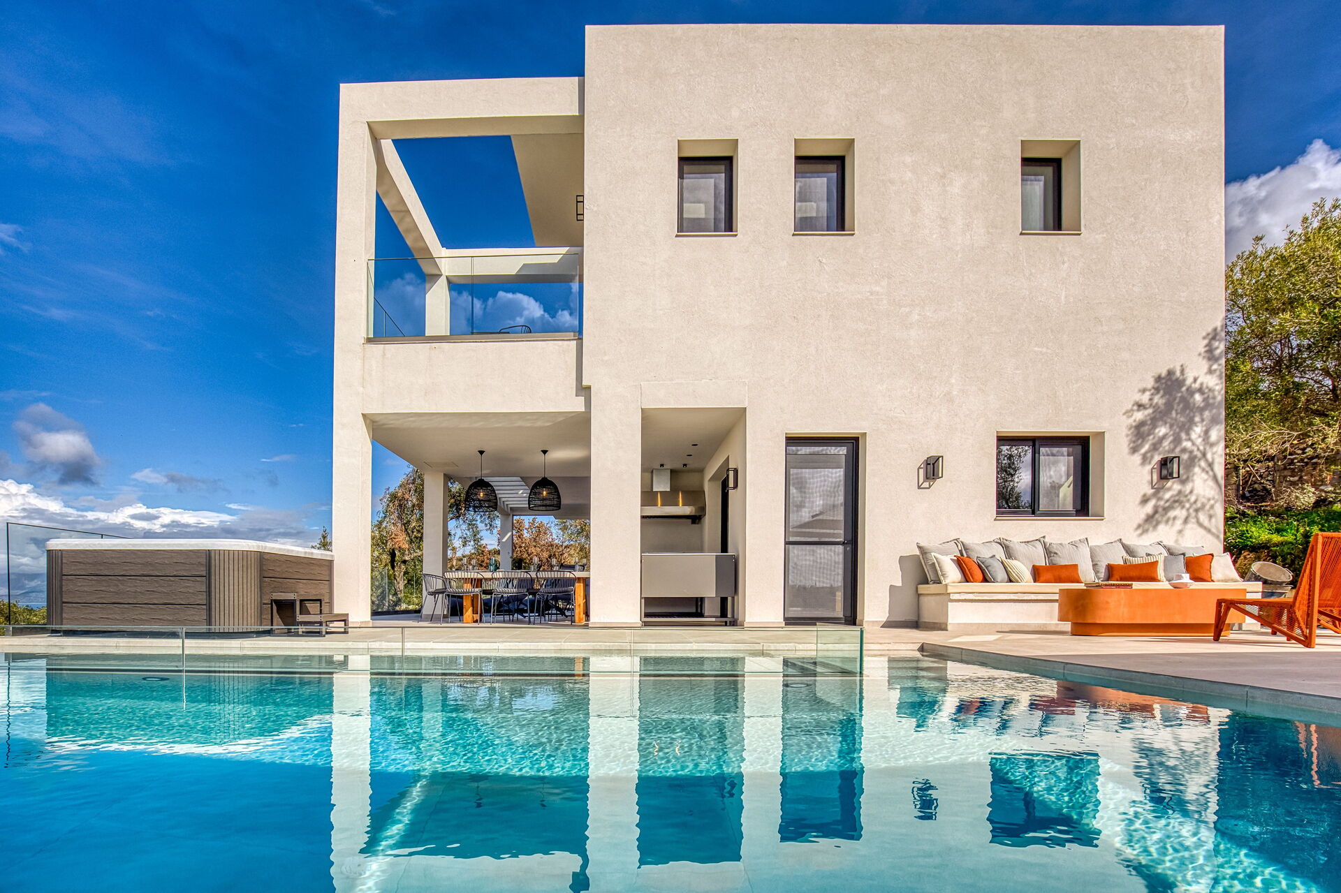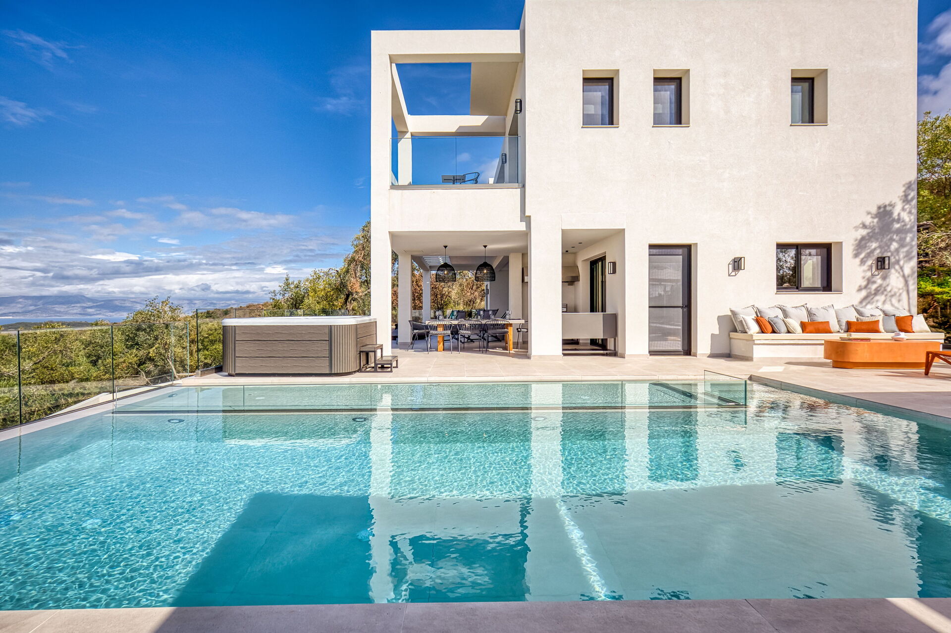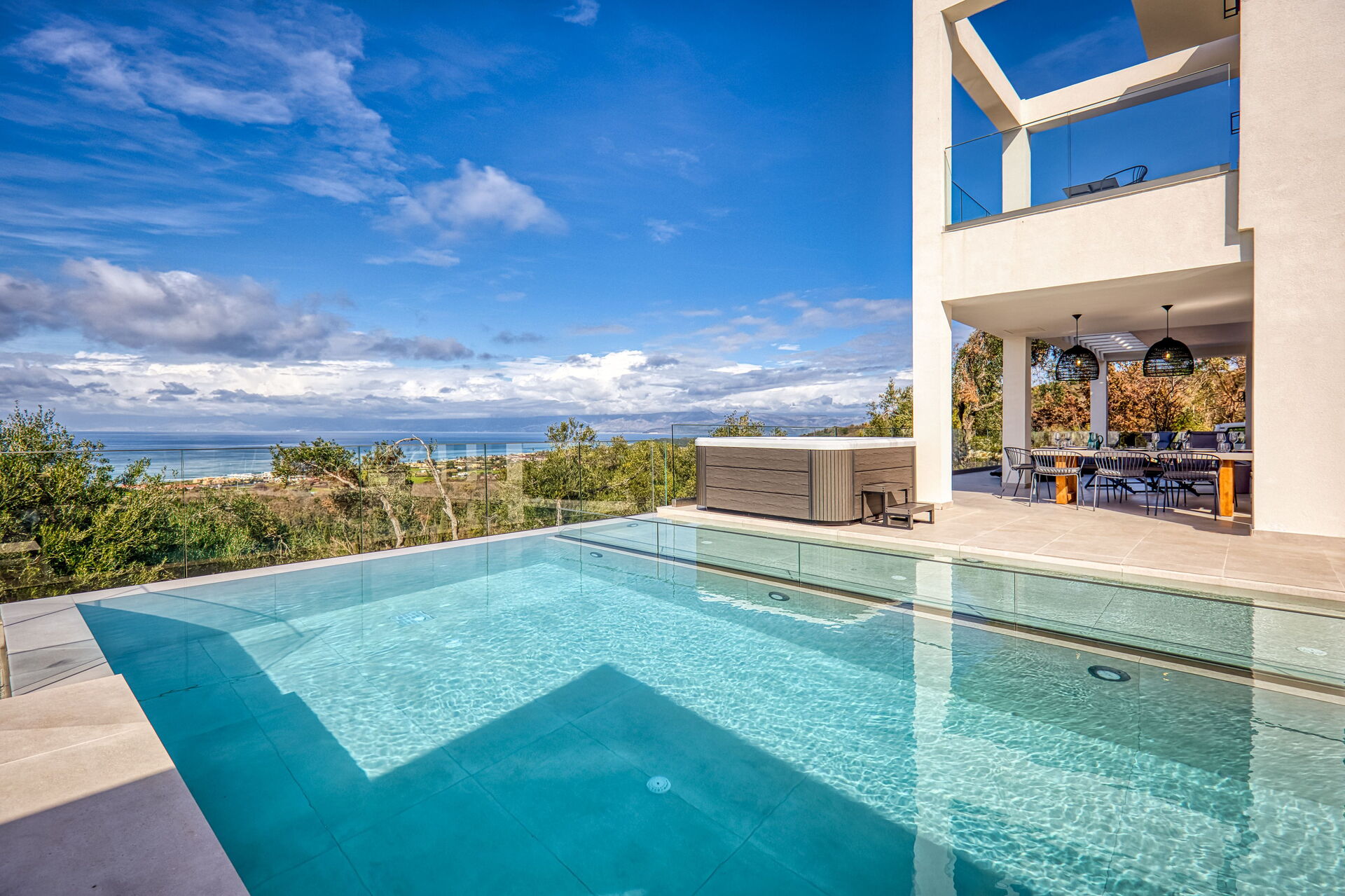 Villa with a private pool and panoramic views on the northern coast of Corfu. Villa Dominante is a luxury villa overlooking the sea and the countryside: it has 4 bedrooms, each with a private bathroom, to accommodate up to 8 people. The villa offers a scenic garden with a lovely private pool where you can watch the sun set over the sea of Corfu; there is also an outdoor dining area.